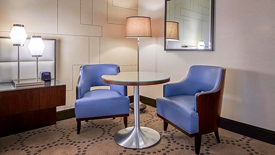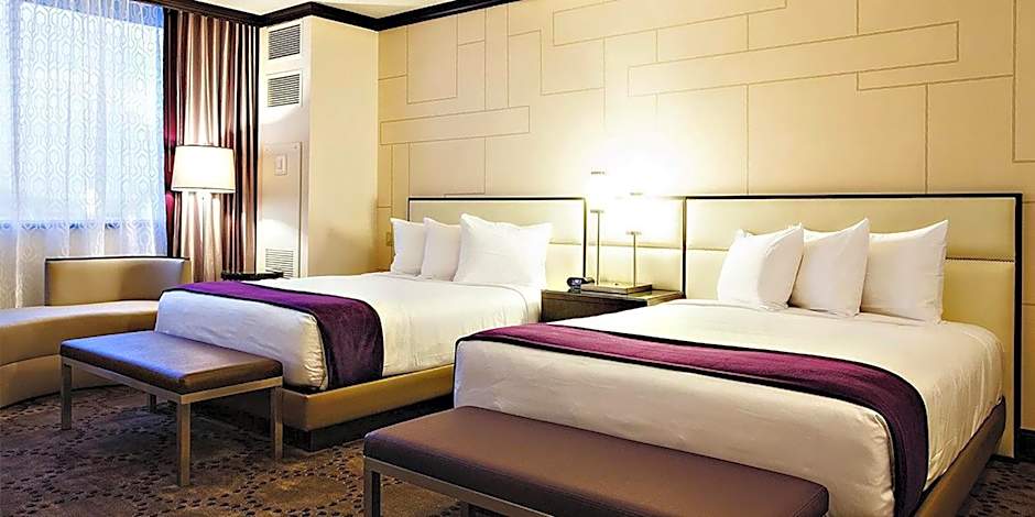 This double room features a cable TV, tile/marble floor and air conditioning, an iron and ironing board, coffee maker, iPod stereo, safe and refrigerator. This room features a view of the city or the bay from the Coastal Tower.