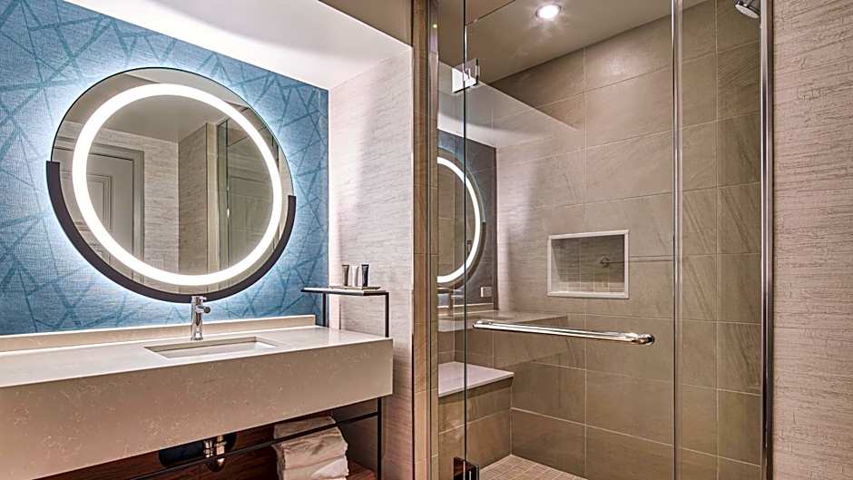 The room features a view of the city or the bay from the Coastal Tower.